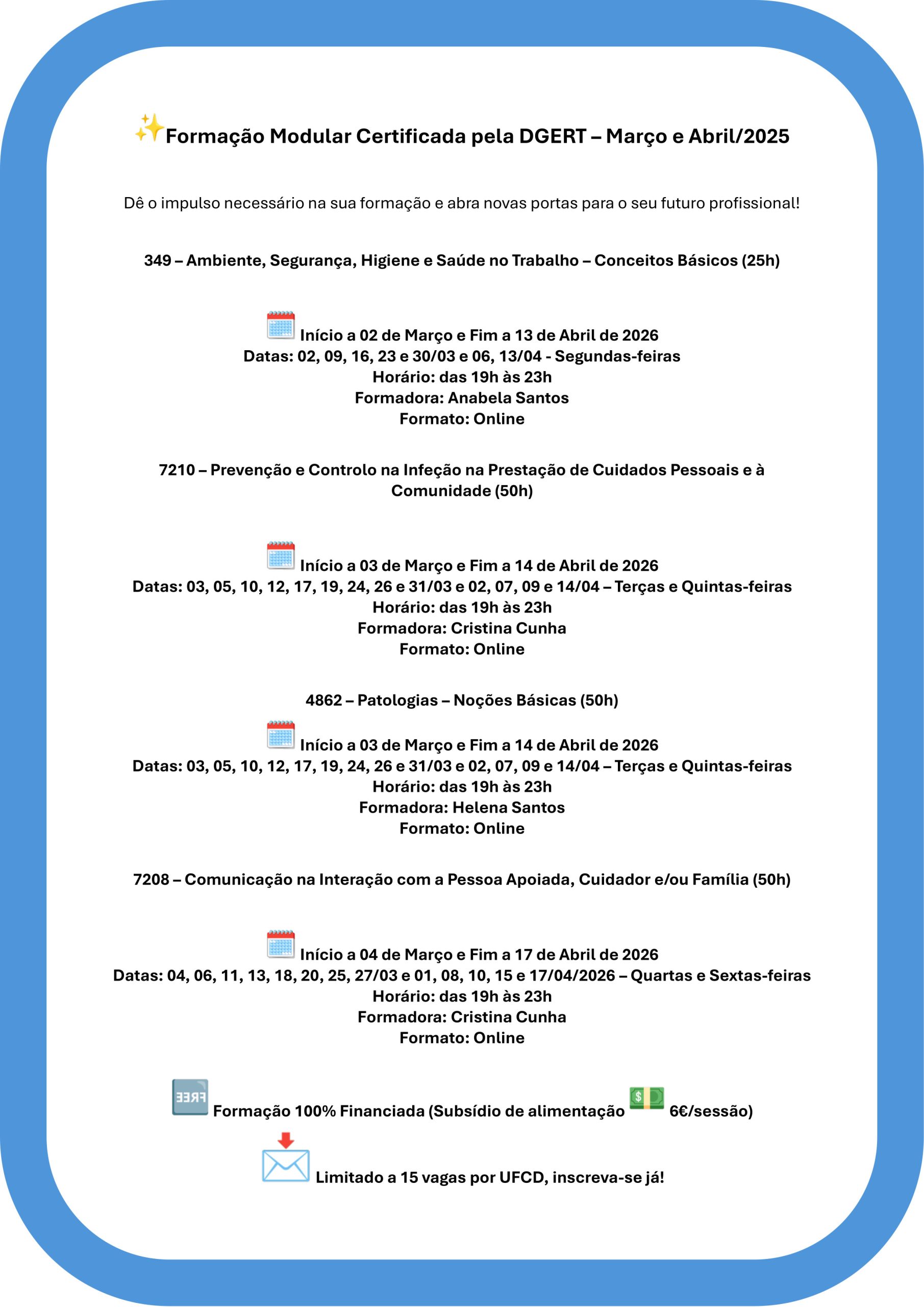Limitado a 15 vagas por UFCD, inscreva-se já!