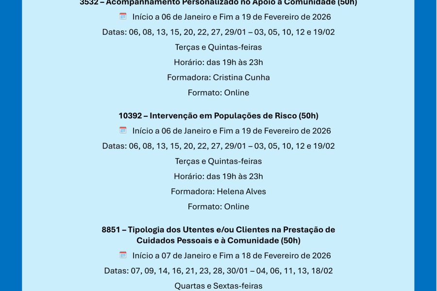 Formações UFCD – Janeiro/Fevereiro